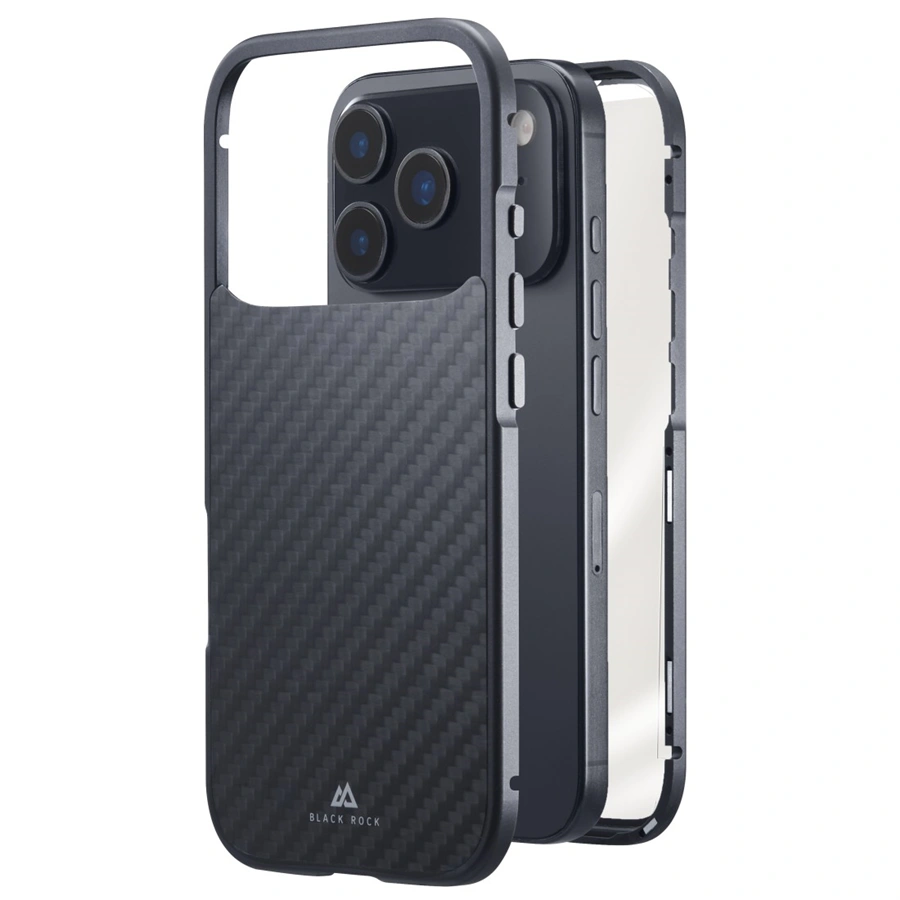 Black Rock 360° Glass, kryt pro Apple iPhone 17 Pro, skleněný, přední + zadní díl, karbonová úprava
