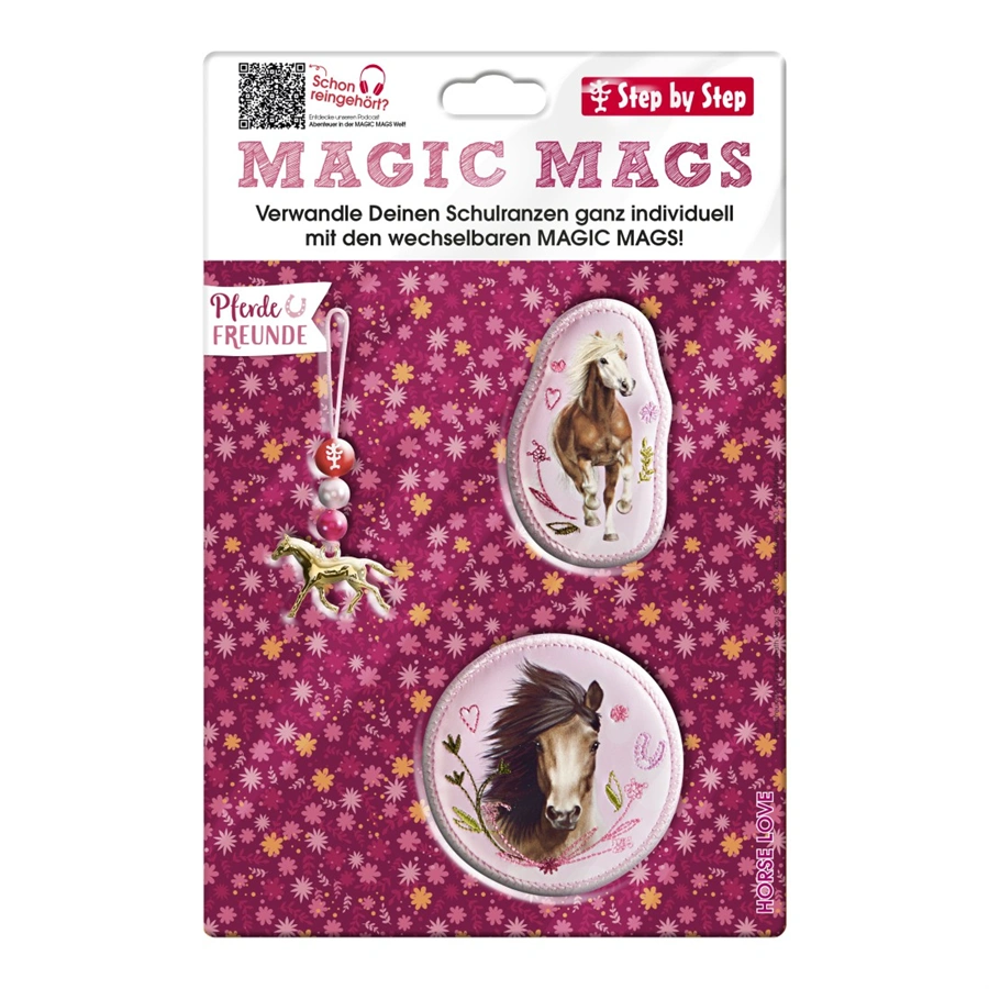 - sada dvou magnetických obrázků a jednoho přívěšku pro školní aktovky a dětské batůžky Step by Step s integrovanými magnetickými plochami