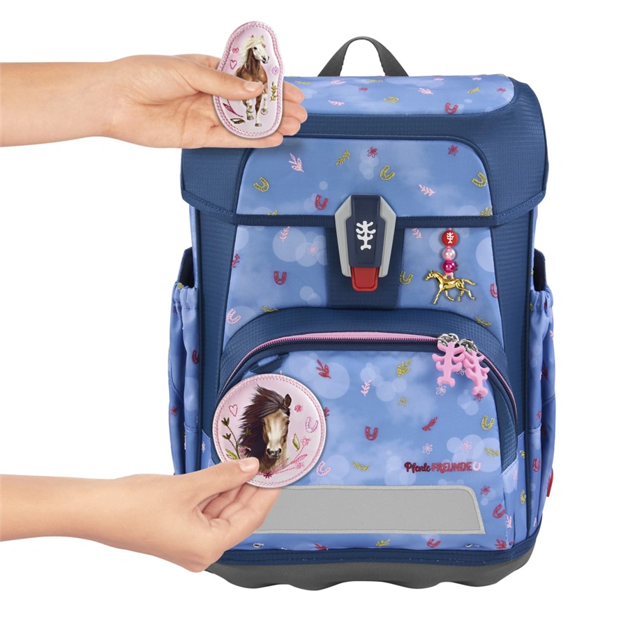 Vyměnitelné obrázky a přívěsky na školní aktovku nebo batoh