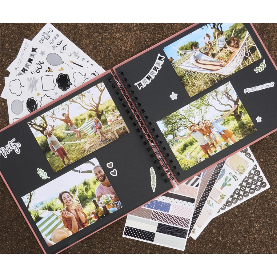 - černé vnitřní listy poskytují prostor pro vaše příběhy a vzpomínky (fotografie, kresby, texty, pohlednice, vstupenky …)