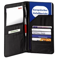 - složky na řidičský průkaz, doklady od auta, účtenky, pera atd.