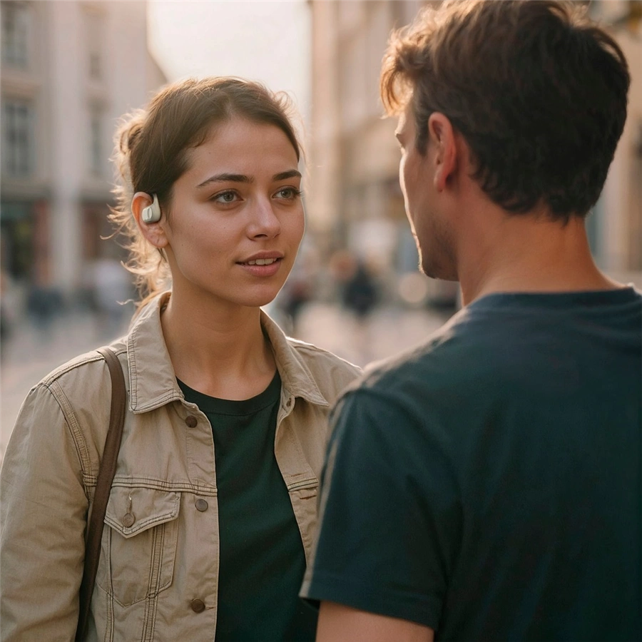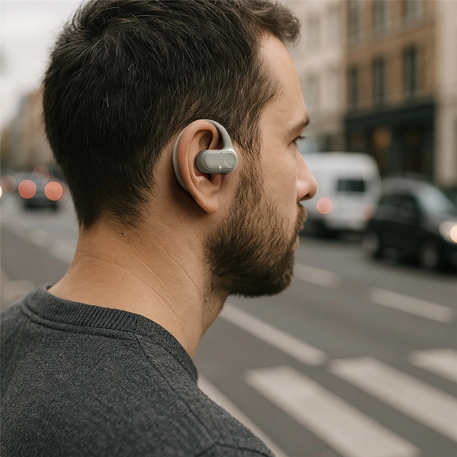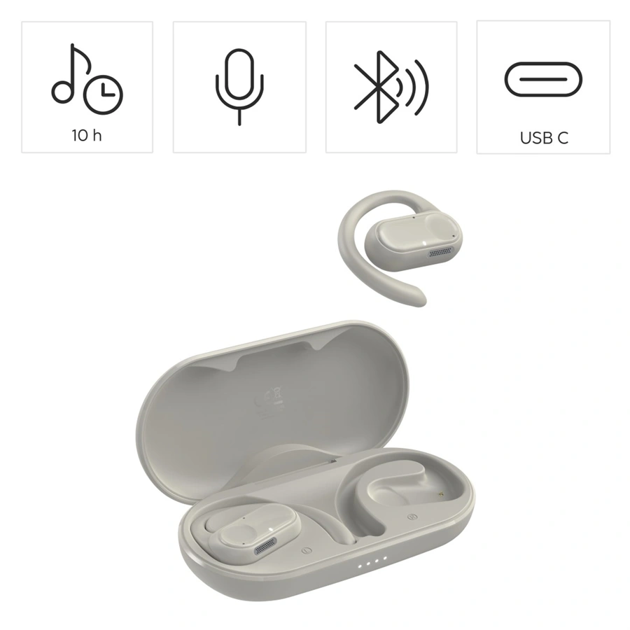 - zcela bezdrátová sluchátka s otevřenou konstrukcí a klipem za ucho