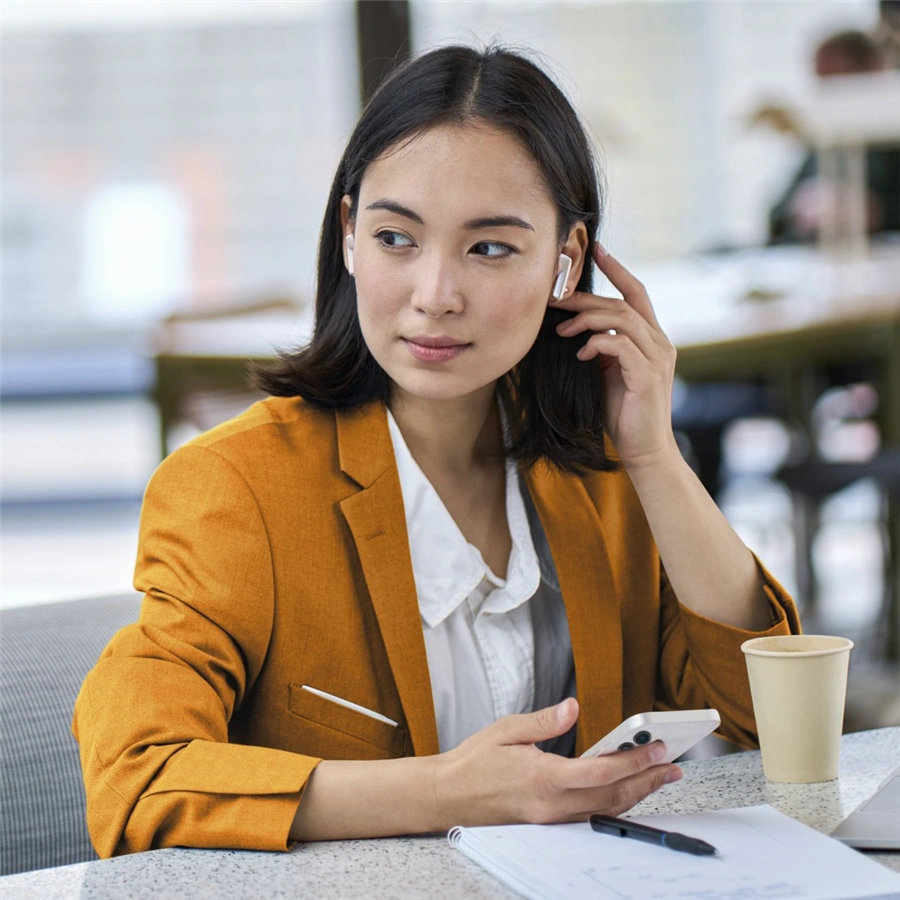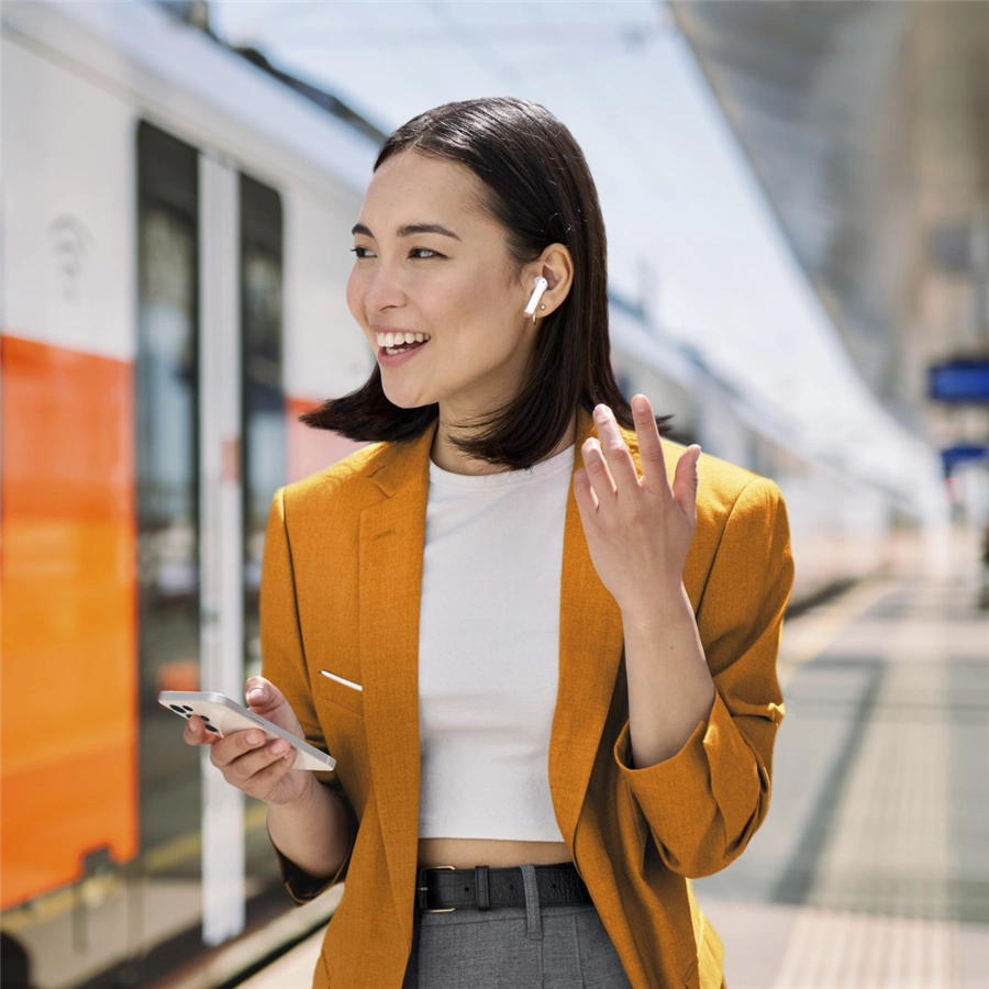 - zcela bezdrátová sluchátka do uší (true wireless) pro poslech hudby a telefonování přes Bluetooth