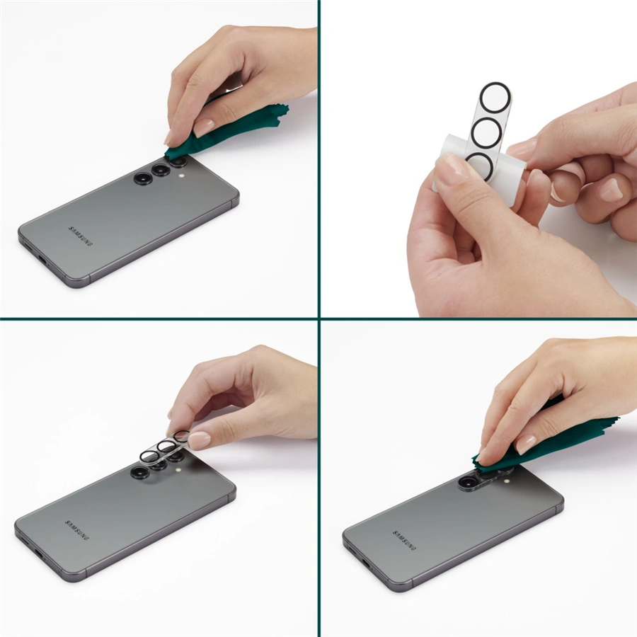 - snadná aplikace v 2 krocích: vyčistěte sklo čoček fotoaparátu a umístěte ochranné sklo