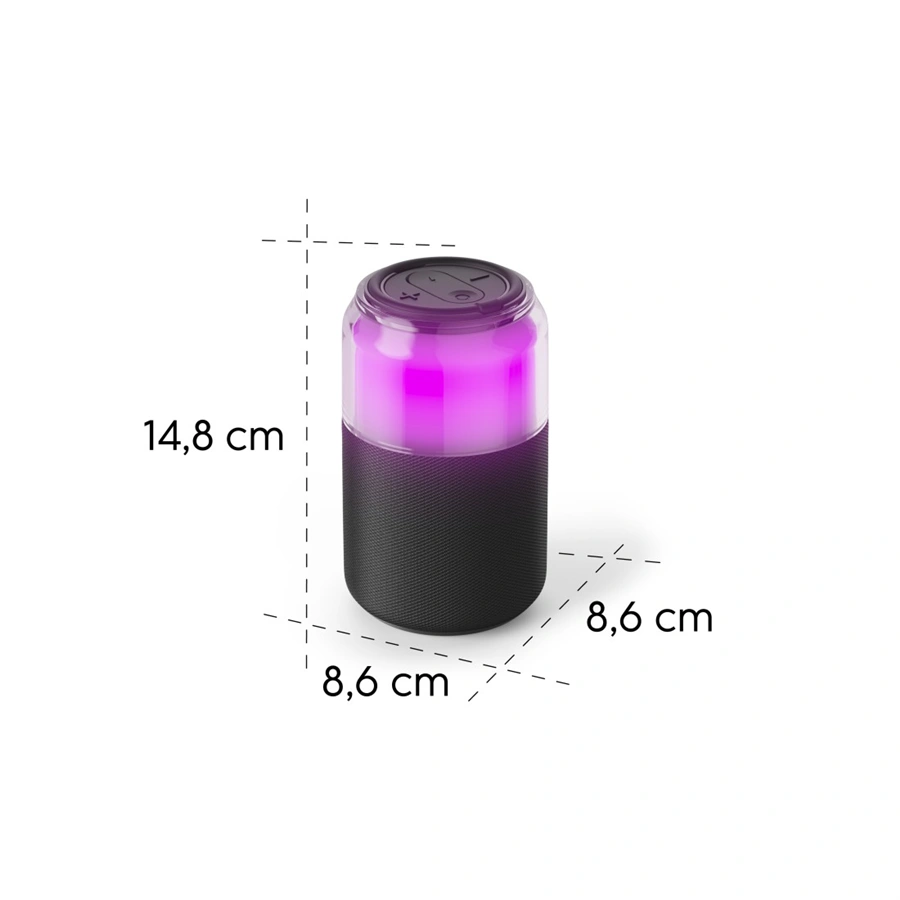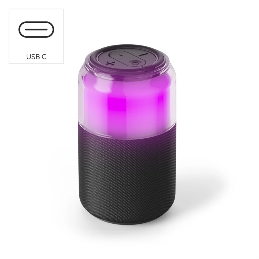 - snadné ovládání pomocí kvalitních pogumovaných tlačítek: následující/předchozí skladba, Play/Pause, LED světelný režim a přehrávání zvuku z externího zařízení připojeného k USB-A konektoru