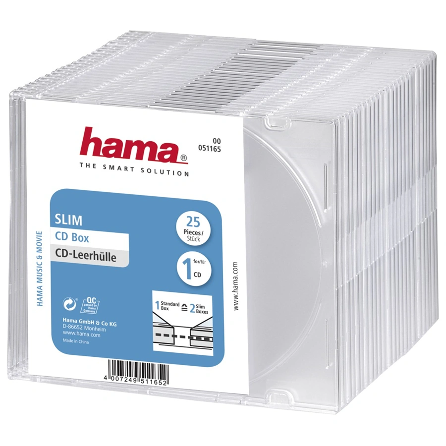Hama CD Slim Box, obal na 1 cd/dvd, průhledný, balení 25 ks (cena za balení)