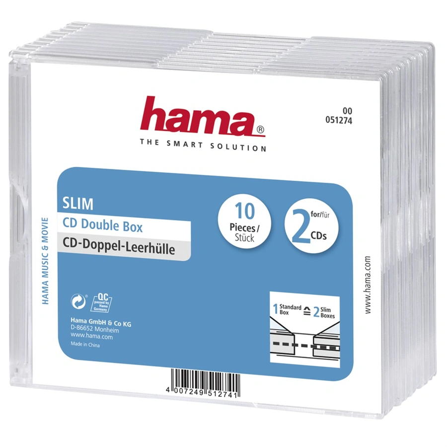 Hama CD Slim Double Box, obal na 2 cd/dvd, průhledný, balení 10 ks (cena za balení)