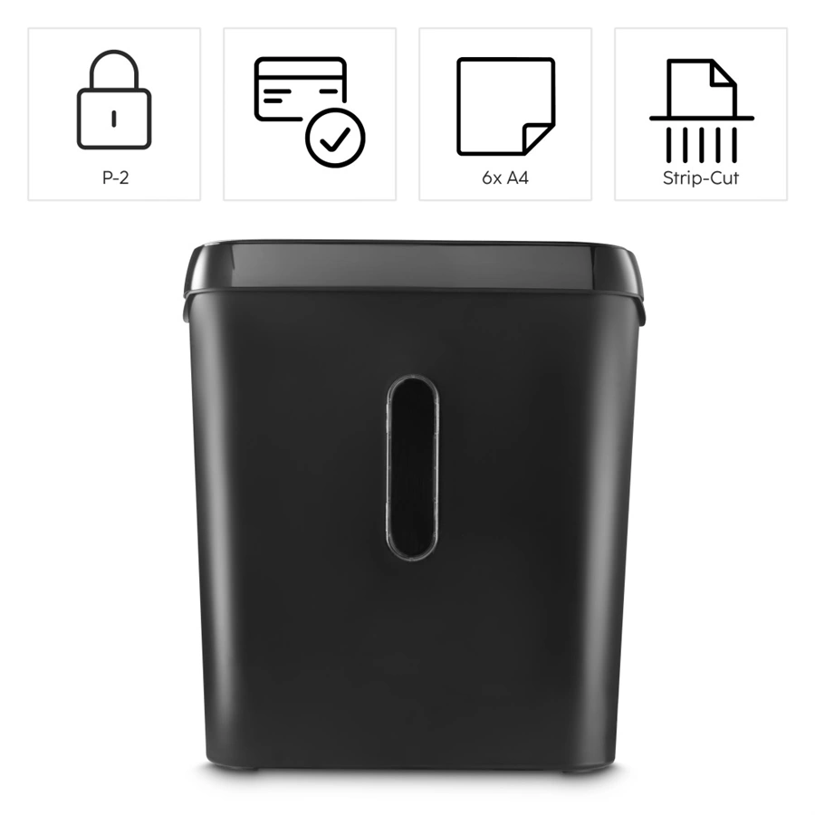 - velikost zeskartovaných kousků (papír/plastové karty): 6 mm/proužky (přímý řez)