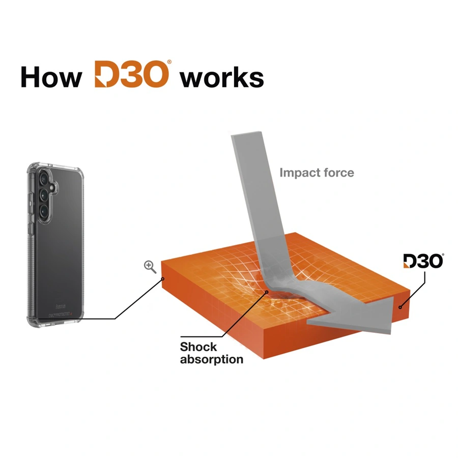 D3O® je unikátní inovativní materiál, který je téměř nezničitelný. Tento materiál zaručí i při minimální tloušťce krytu maximální ochranu zařízení při nárazech, pádech a úderech, a to dokonce i při pádu z výšky 3,5 m. Zároveň ale vůbec neovlivní používání a ovládání zařízení. Tvrdost 4H zaručuje mimořádnou odolnost vůči poškrábání. Díky použitým materiálům zůstane kryt stále čirý a nikdy nezežloutne, jak se to stává u běžných krytů.