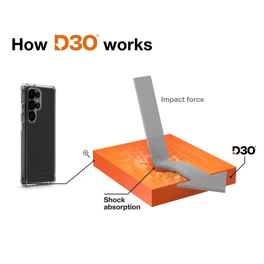 D3O® je unikátní inovativní materiál, který je téměř nezničitelný. Tento materiál zaručí i při minimální tloušťce krytu maximální ochranu zařízení při nárazech, pádech a úderech, a to dokonce i při pádu z výšky 3,5 m. Zároveň ale vůbec neovlivní používání a ovládání zařízení. Tvrdost 4H zaručuje mimořádnou odolnost vůči poškrábání. Díky použitým materiálům zůstane kryt stále čirý a nikdy nezežloutne, jak se to stává u běžných krytů.