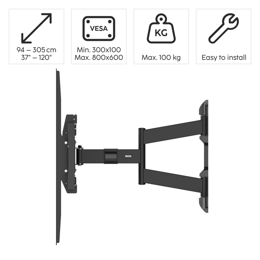Hama nástěnný držák TV až 120", 800x600, pohyblivý, 100 kg