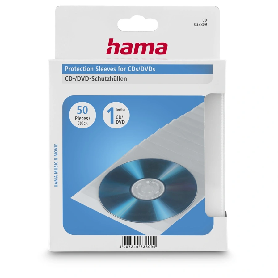 Hama ochranné obaly pro CD/DVD, polypropylen, průhledné, balení 50 ks (cena za balení)