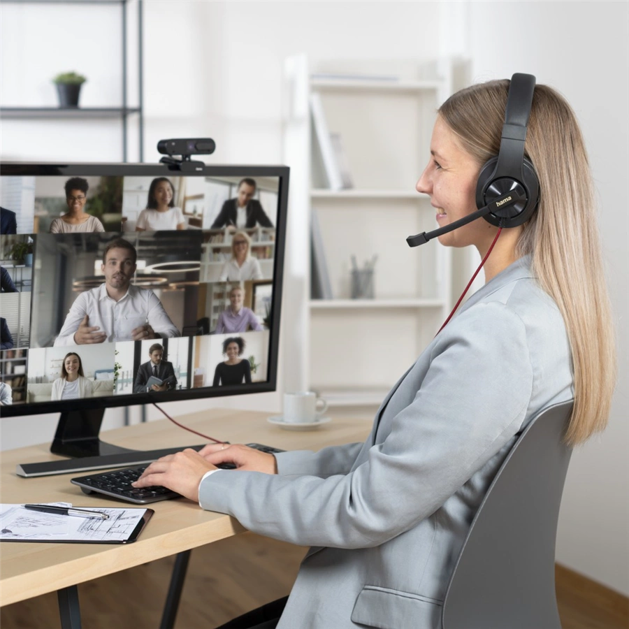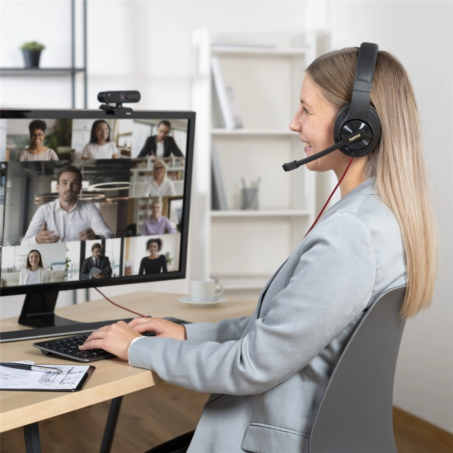 - kancelářský stereo headset s nastavitelným ramenem mikrofonu a USB-A připojením