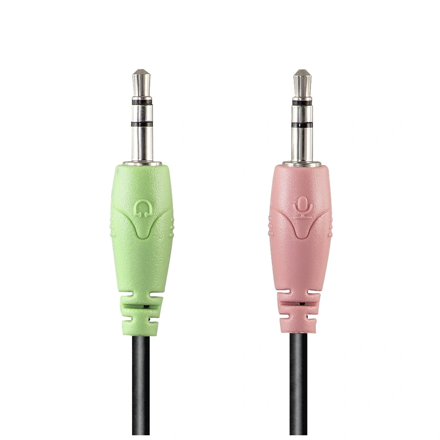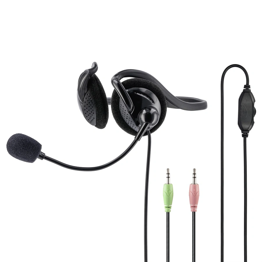 - kancelářský stereo headset na uši (On-Ear) s hlavovým mostem za krk, nastavitelným ramenem mikrofonu a 2x jack 3,5mm připojením