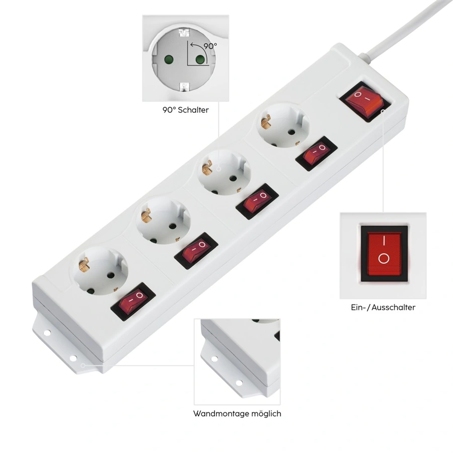 Hama prodlužovací přívod XL, 4 zásuvky schuko, 5 vypínačů, 1,4 m, bílá