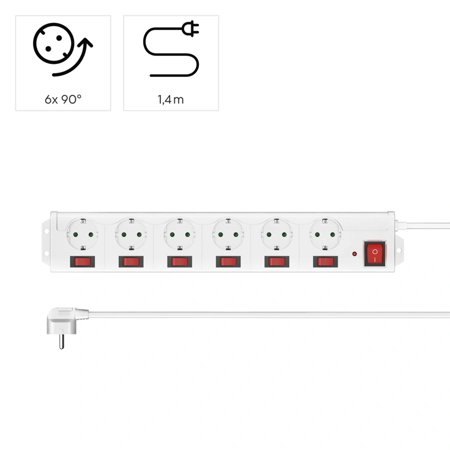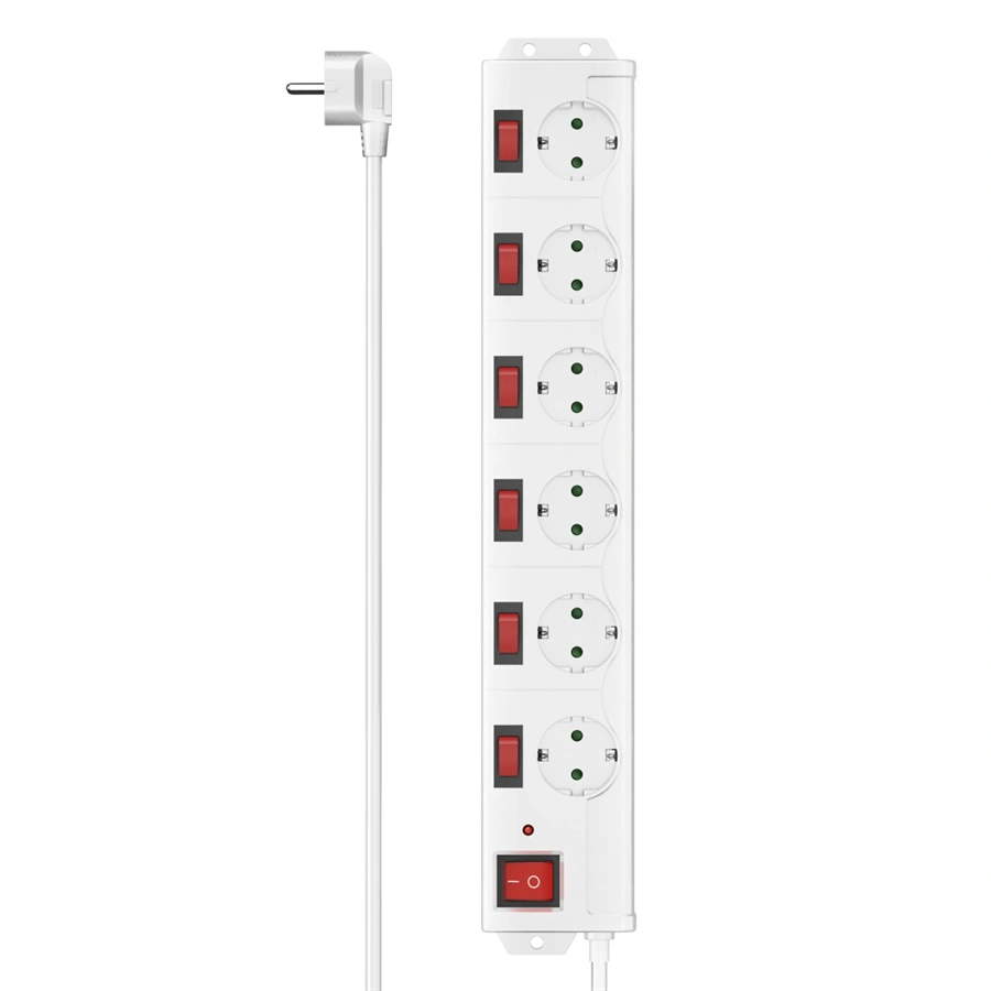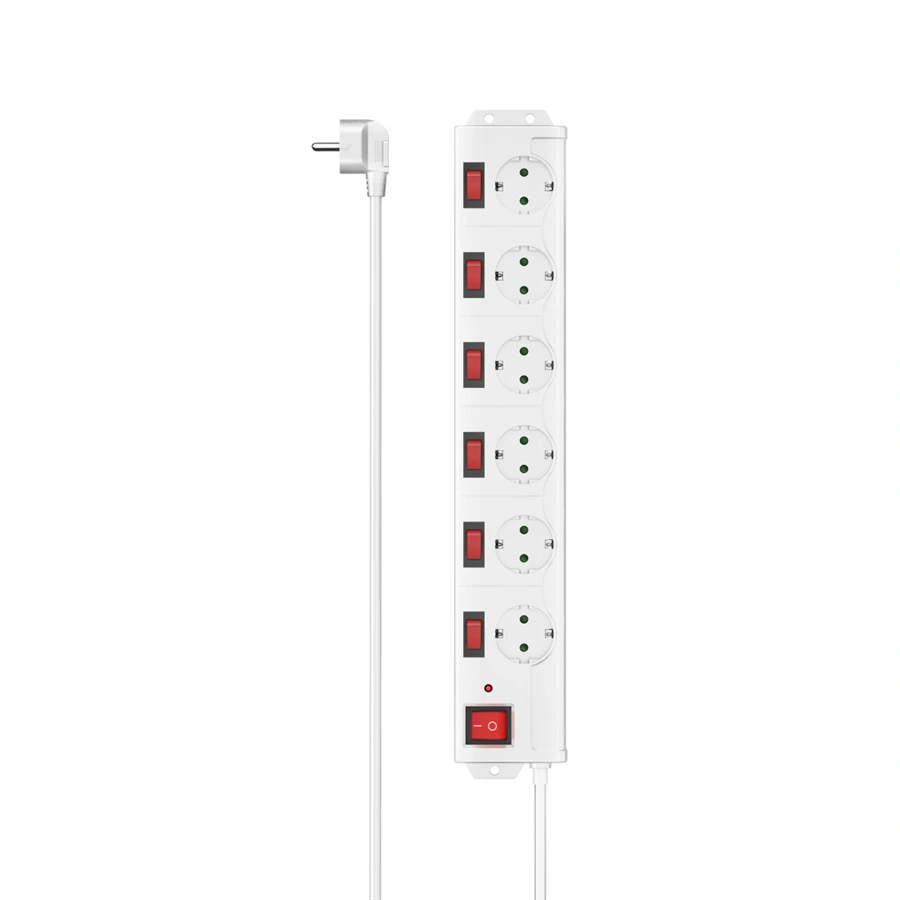 - 6zásuvkový prodlužovací přívod se samostatným vypínačem každé zásuvky