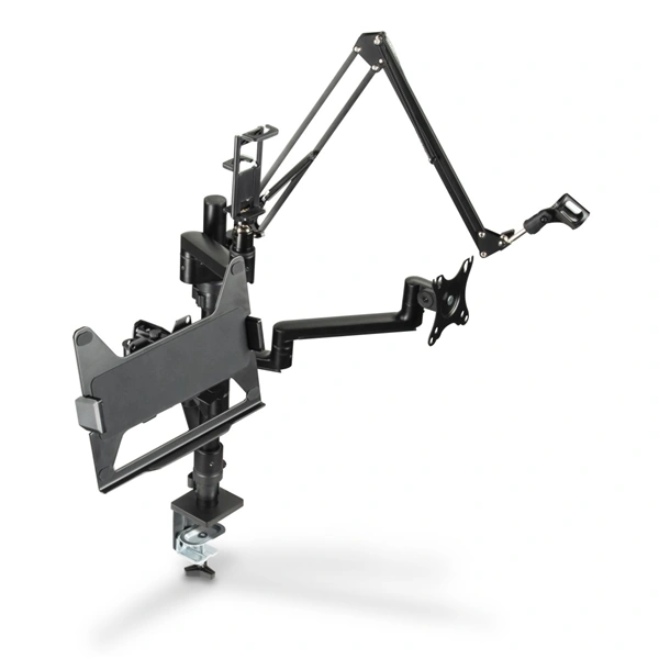 1. s plynovým pístem pro výškové nastavení (rozsah cca 30 cm) a VESA modulem pro monitor nebo držák notebooku; nosnost max. 8 kg, rotace +/-180°, naklápění +/-35°, otáčení do stran +/-90°, délka ramene 54 cm