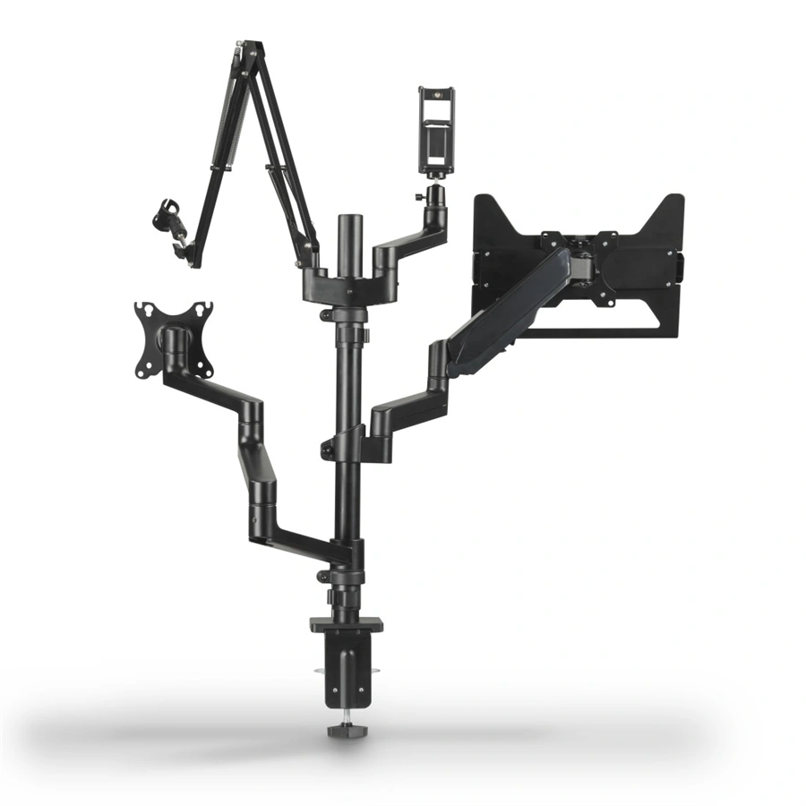 - 4 ramena pro monitor nebo notebook, tablet nebo mobil, mikrofon, webkameru, kruhové LED světlo nebo fotoaparát