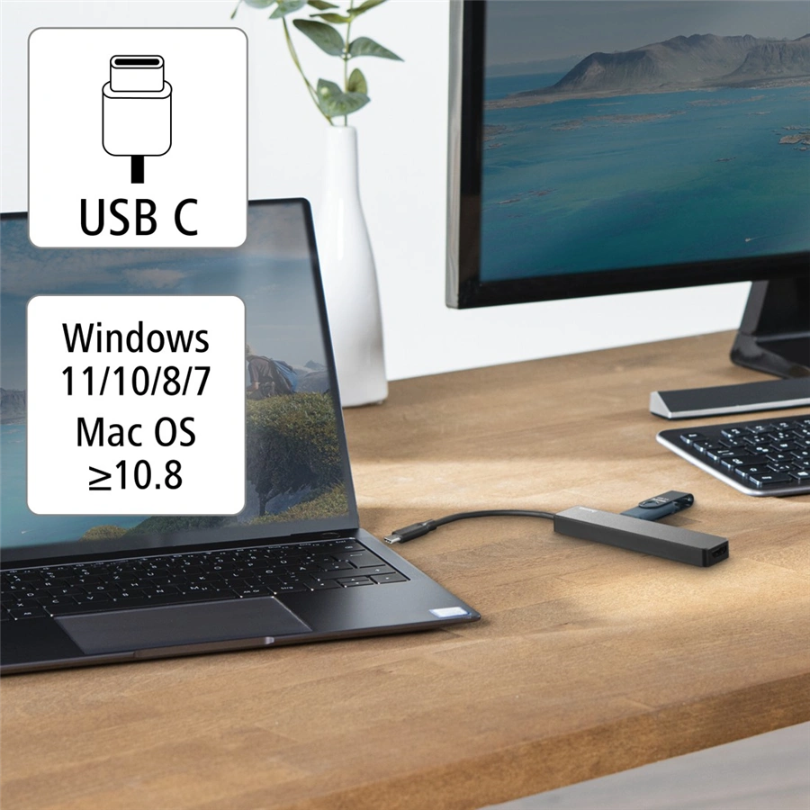 - USB-C hub pro připojení až 5 zařízení, pro širší možnosti připojení na PC, notebooku, MacBooku, tabletu nebo má-li být připojeno více zařízení pomocí jedné přípojky