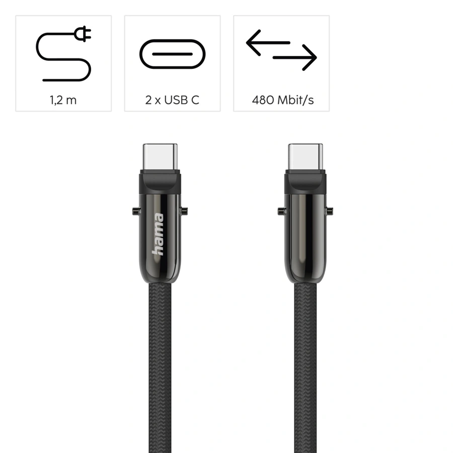 Hama kabel USB-C 2.0 typ C-C 0,2 m, opletený, černý