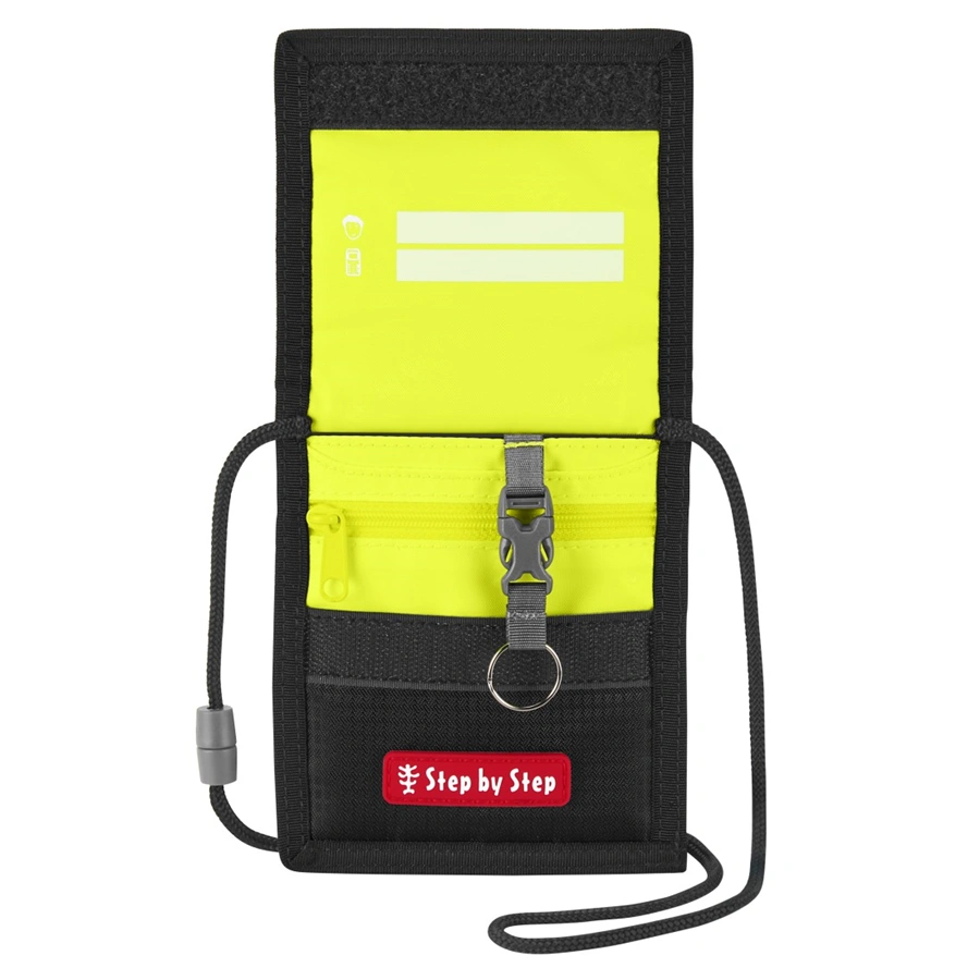 VybaveníOdnímatelný kroužek na klíče | Prostor na štítek s jménem/adresou | Průhledná přihrádka na dokument (průkaz, kartička na obědy, MHD atd.) | Přihrádka na mince uzavíratelná na zip | Šňůrka na krk s bezpečnostním uzávěrem