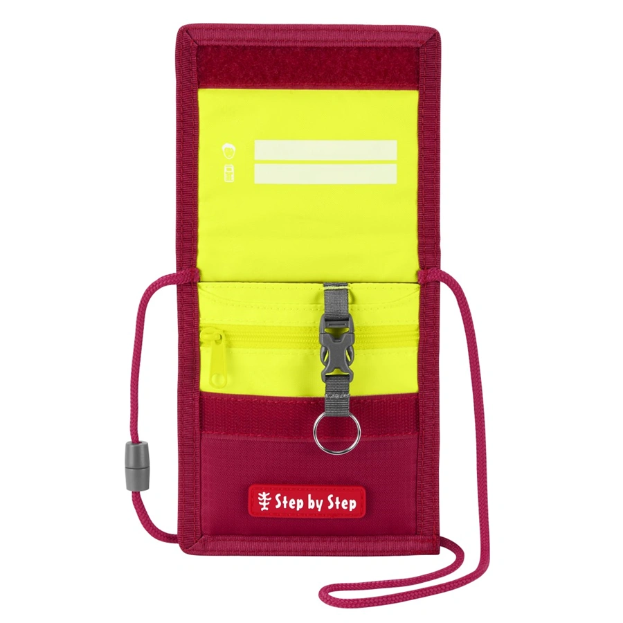 VybaveníOdnímatelný kroužek na klíče | Prostor na štítek s jménem/adresou | Průhledná přihrádka na dokument (průkaz, kartička na obědy, MHD atd.) | Přihrádka na mince uzavíratelná na zip | Šňůrka na krk s bezpečnostním uzávěrem