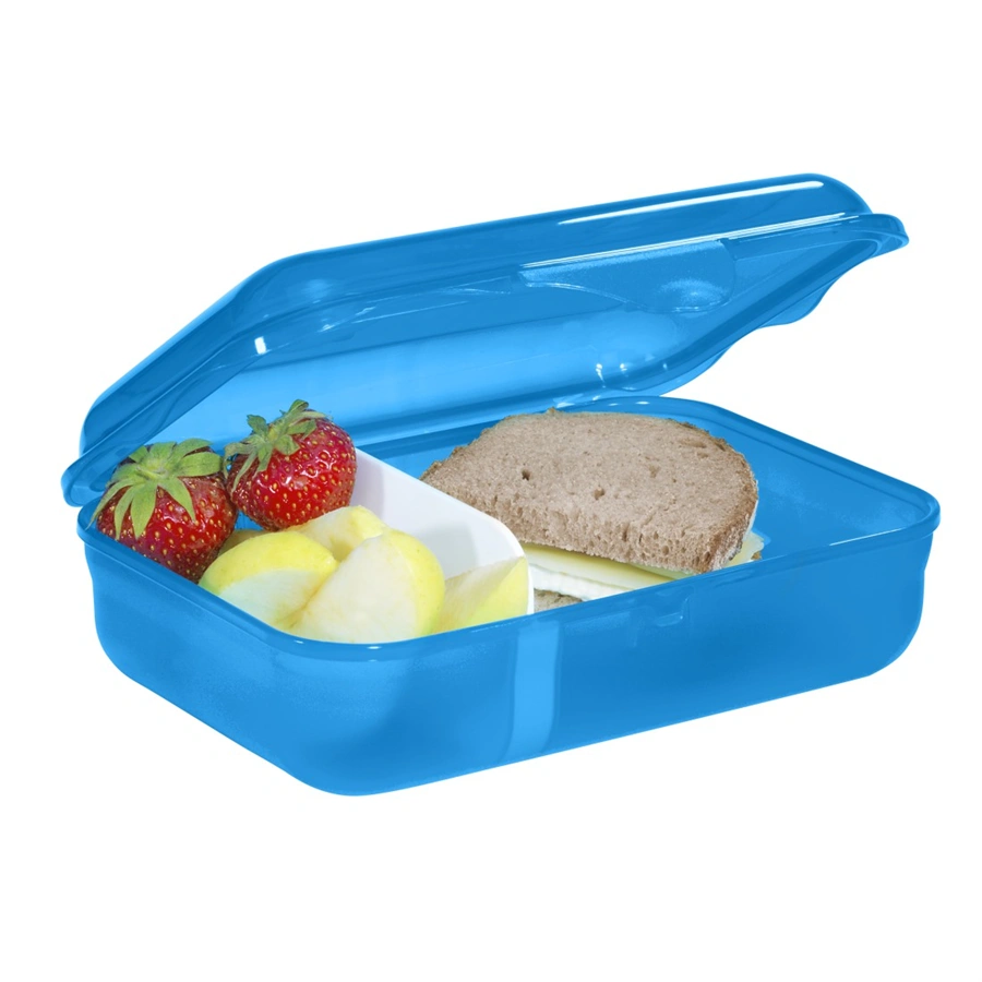 - uvnitř krabičky je vyjímatelná, posuvná přepážka pro oddělení potravin např. zeleniny, ovoce či sladkostí