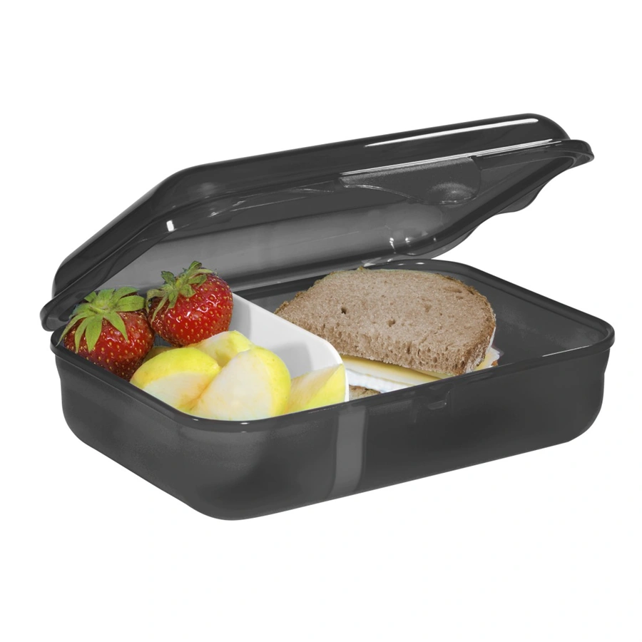 - uvnitř krabičky je vyjímatelná, posuvná přepážka pro oddělení potravin např. zeleniny, ovoce či sladkostí