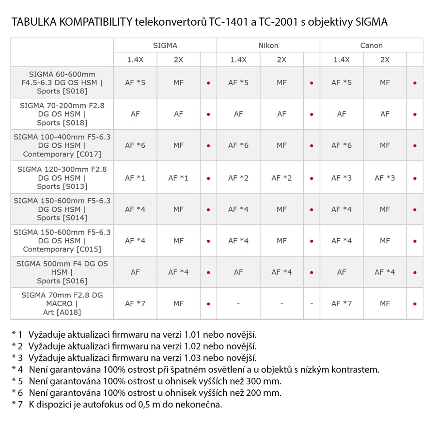 SIGMA telekonvertor TC-1401 1.4x pro Canon EF