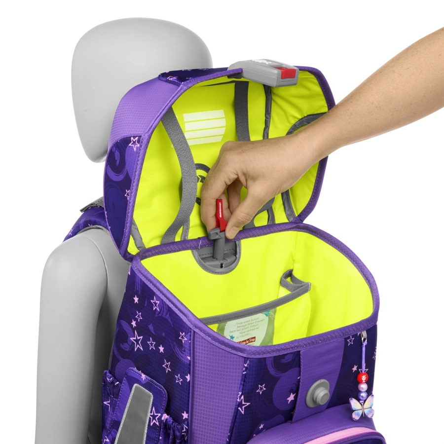 VybaveníDvě boční kapsy | Gumičky v klopě pro přichycení penálu | Izolovaná přední kapsa | Kapsa na těžké věci | Poutko na zavěšení | Připevnění pytlíku na cvičební úbor/přezůvky | Robustní, stabilní dno | Rozvrh hodin | Uzavírání na magnet