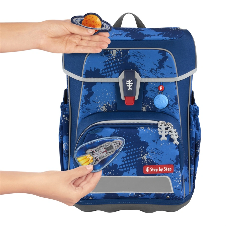 Vyměnitelné obrázky MAGIC MAGS lze z aktovky sejmout a nahradit jinými MAGIC MAGS dle osobního výběru. Díky tomu je každá aktovka jedinečná. Vyměnitelné obrázky MAGIC MAGS lze zakoupit jako samostatný set. Set se skládá ze dvou magnetických obrázků a jednoho přívěšku. Pro neutrální design můžete MAGIS MAGS z aktovky odstranit, aniž by na aktovce zůstaly stopy po lepidle nebo suchém zipu.