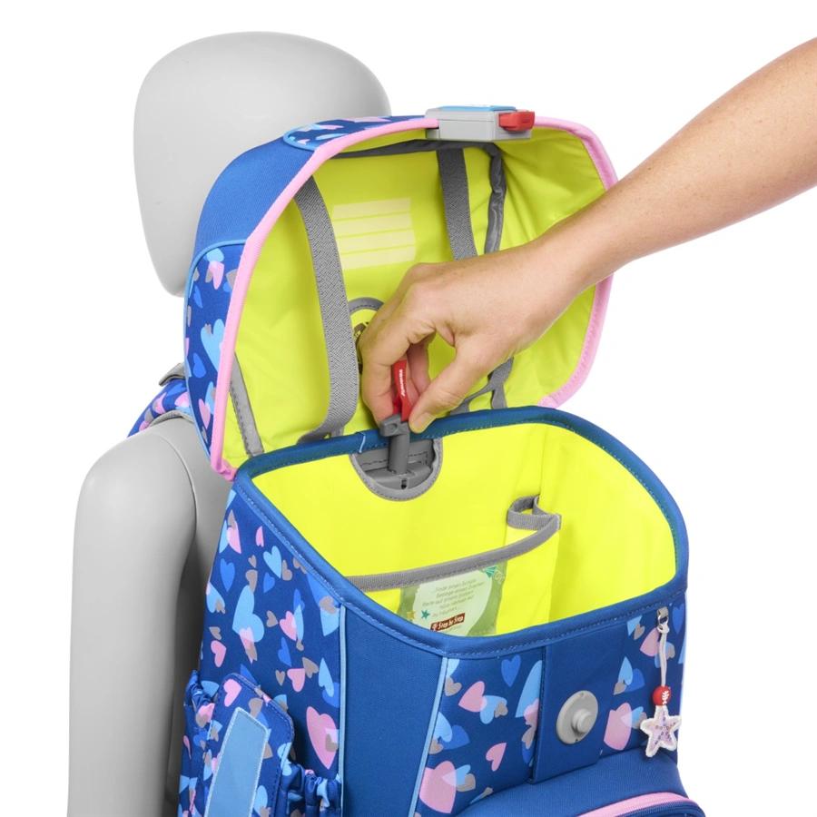 VybaveníDvě boční kapsy | Gumičky v klopě pro přichycení penálu | Izolovaná přední kapsa | Kapsa na těžké věci | Poutko na zavěšení | Prostor pro složky A4 | Připevnění pytlíku na cvičební úbor/přezůvky | Robustní, stabilní dno | Rozvrh hodin | Uzavírání na magnet