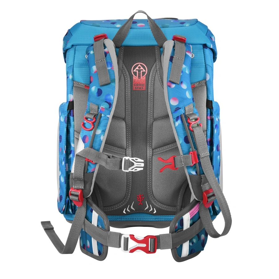 Dvě boční kapsy | Gumičky v klopě pro přichycení penálu | Izolovaná přední kapsa | Kapsa na těžké věci | Poutko na zavěšení | Prostor pro složky A4 | Připevnění pytlíku na cvičební úbor/přezůvky | Robustní, stabilní dno | Rozvrh hodin | Uzavírání na magnet