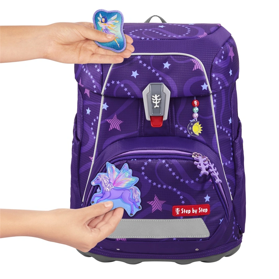 Vyměnitelné obrázky MAGIC MAGS lze z aktovky sejmout a nahradit jinými MAGIC MAGS dle osobního výběru. Díky tomu je každá aktovka jedinečná. Vyměnitelné obrázky MAGIC MAGS lze zakoupit jako samostatný set. Set se skládá ze dvou magnetických obrázků a jednoho přívěšku. Pro neutrální design můžete MAGIS MAGS z aktovky odstranit, aniž by na aktovce zůstaly stopy po lepidle nebo suchém zipu.