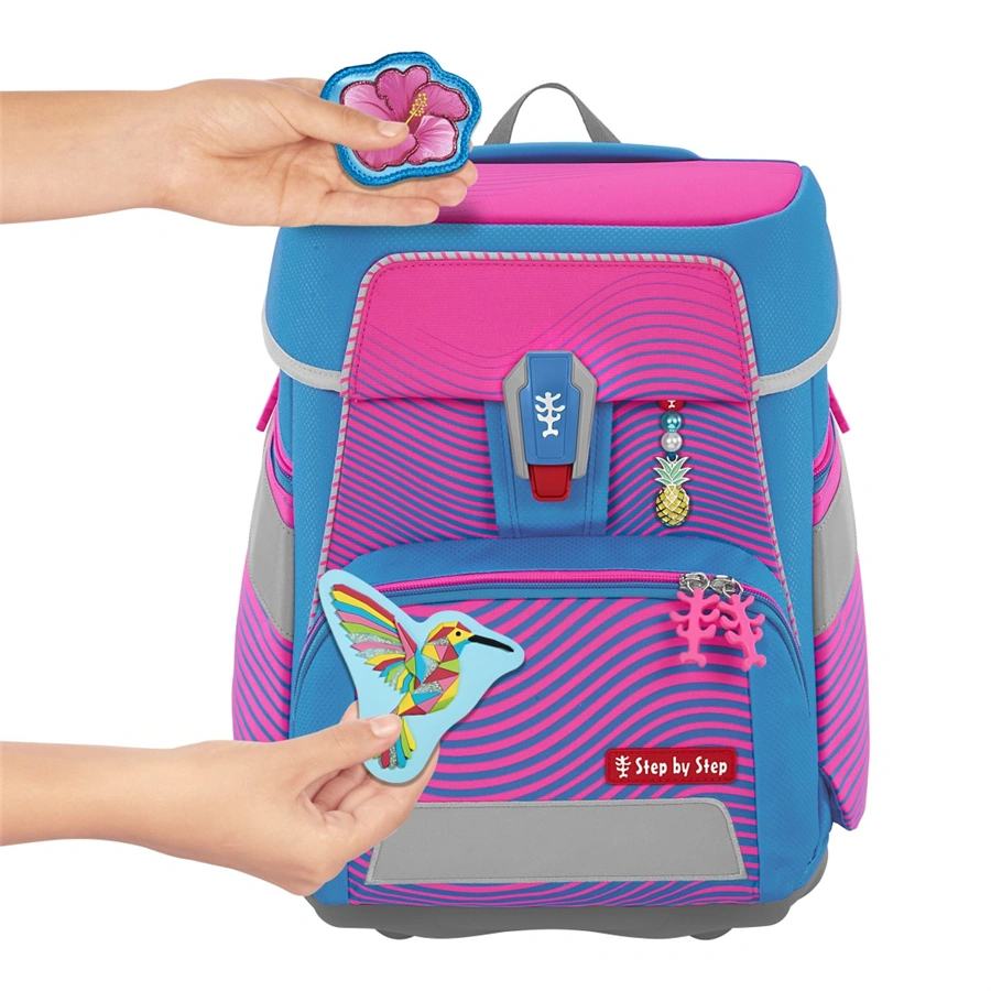 Vyměnitelné obrázky MAGIC MAGS lze z aktovky sejmout a nahradit jinými MAGIC MAGS dle osobního výběru. Díky tomu je každá aktovka jedinečná. Vyměnitelné obrázky MAGIC MAGS lze zakoupit jako samostatný set. Set se skládá ze dvou magnetických obrázků a jednoho přívěšku. Pro neutrální design můžete MAGIS MAGS z aktovky odstranit, aniž by na aktovce zůstaly stopy po lepidle nebo suchém zipu.