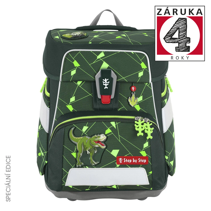 Školní aktovka Step by Step SPACE SHINE, Dino Night Tyro - 5 dílný set, AGR certifikát