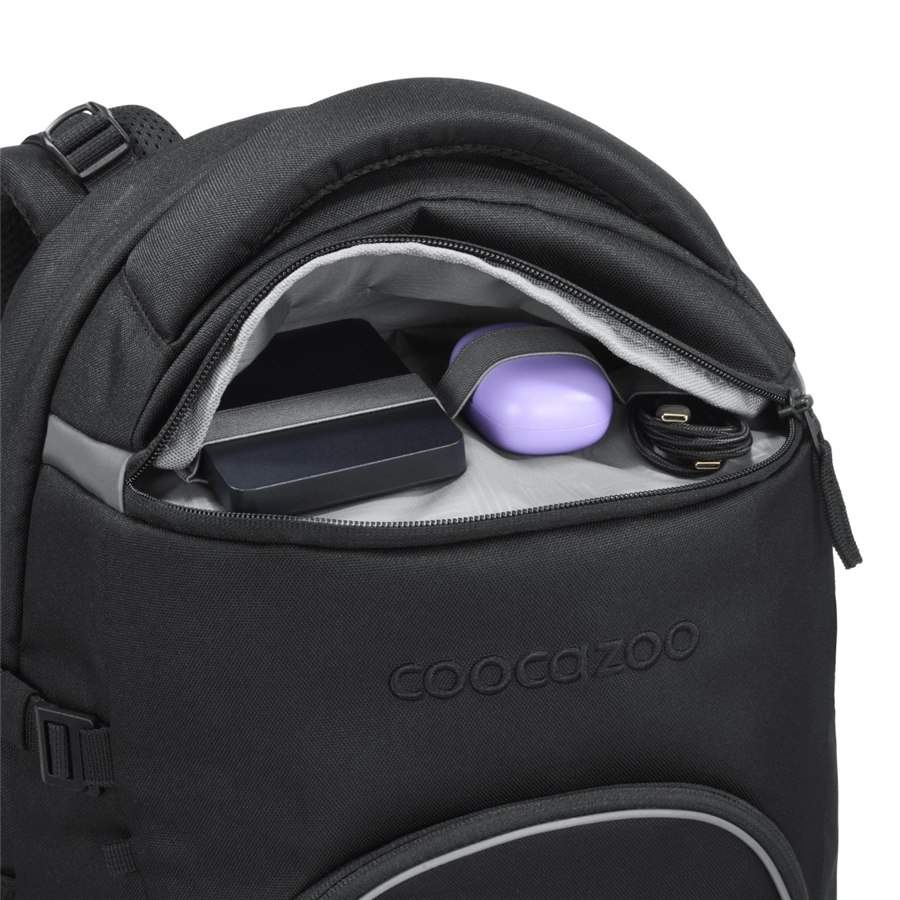 - multifunkční kapsa v horní části batohu pro digitální příslušenství (např. nabíjecí kabely, sluchátka, powerbanku …)