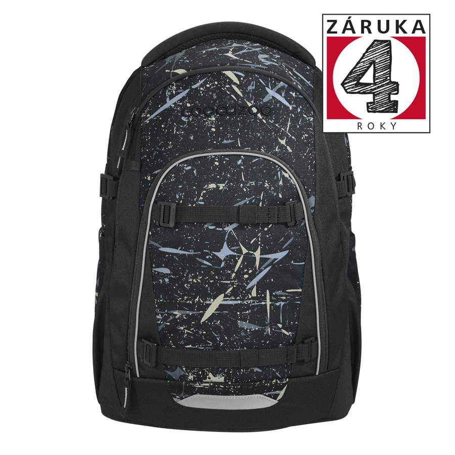 - odnímatelné upevňovací popruhy na přední straně batohu pro připevnění bundy, helmy nebo třeba skateboardu