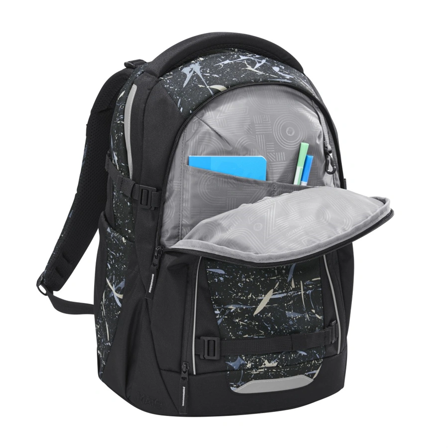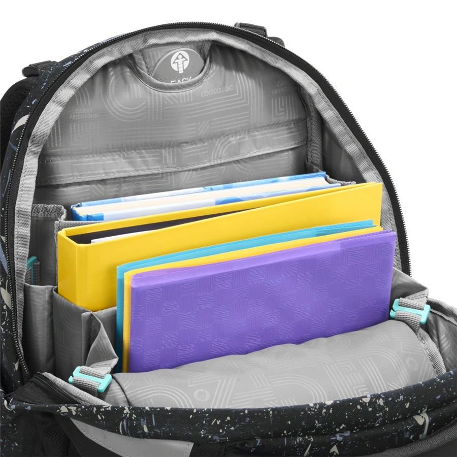 - velká hlavní kapsa s přihrádkou na knihy a odnímatelnou přepážkou, kapsa s organizérem a přední kapsa např. pro svačinovou krabičku