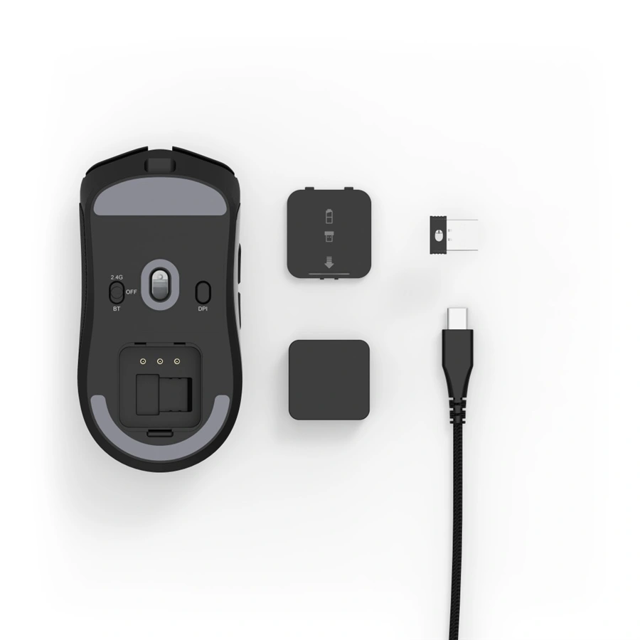 - vyměnitelný akumulátor s výdrží až 24 h v USB 2,4 GHz režimu, nebo až 72 h v Bluetooth režimu