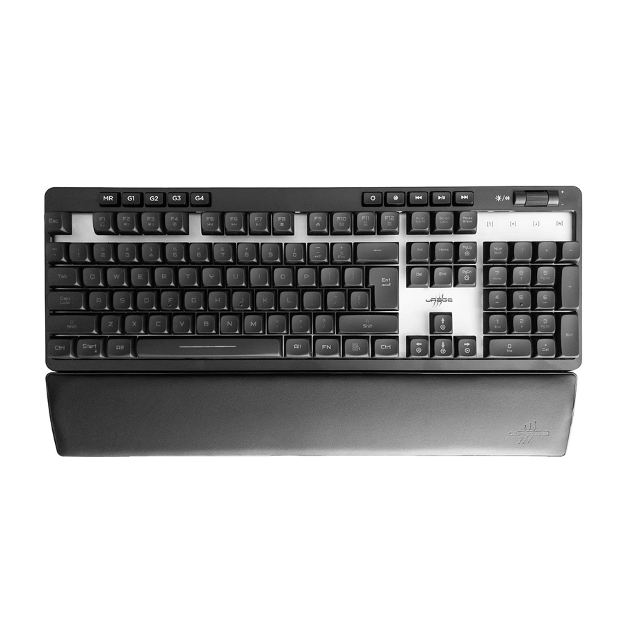- herní klávesnice s transparentním podsvíceným povrchem a polstrovanou podložkou pod zápěstí